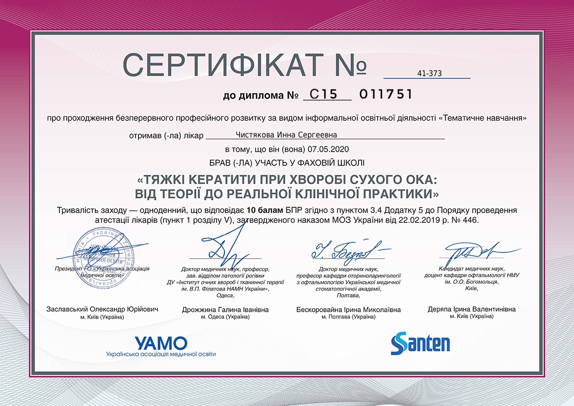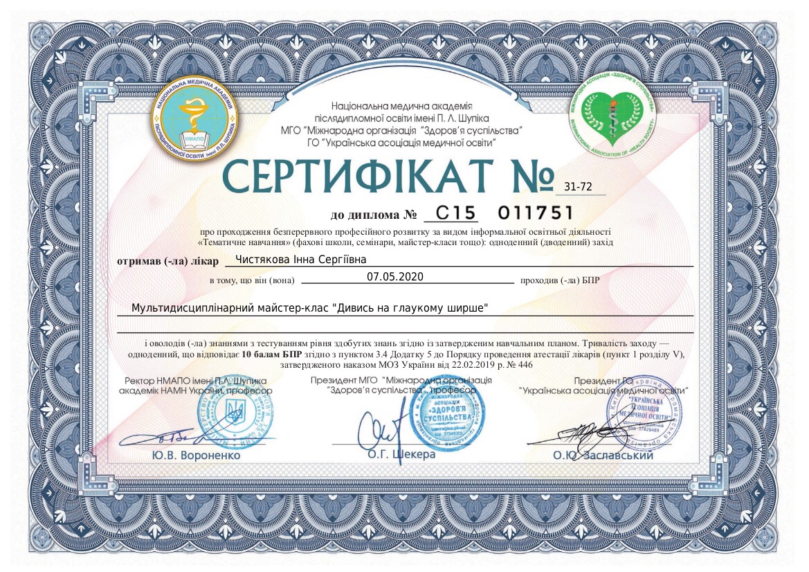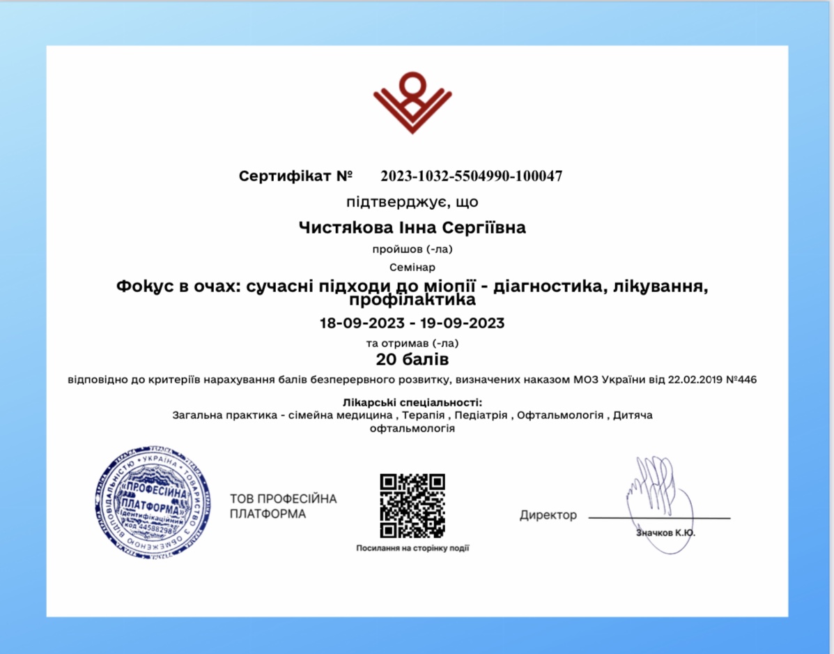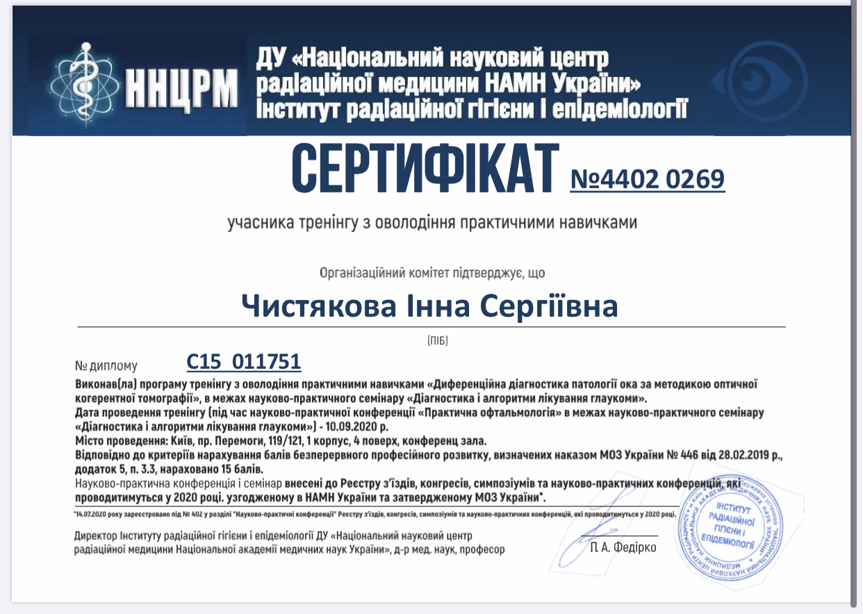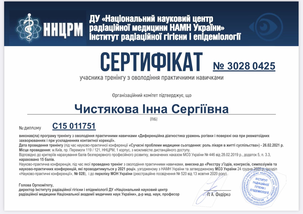Креативна та небайдужа, завжди відмінно орієнтується в трендах офтальмології. Любить лазери та стріляти.