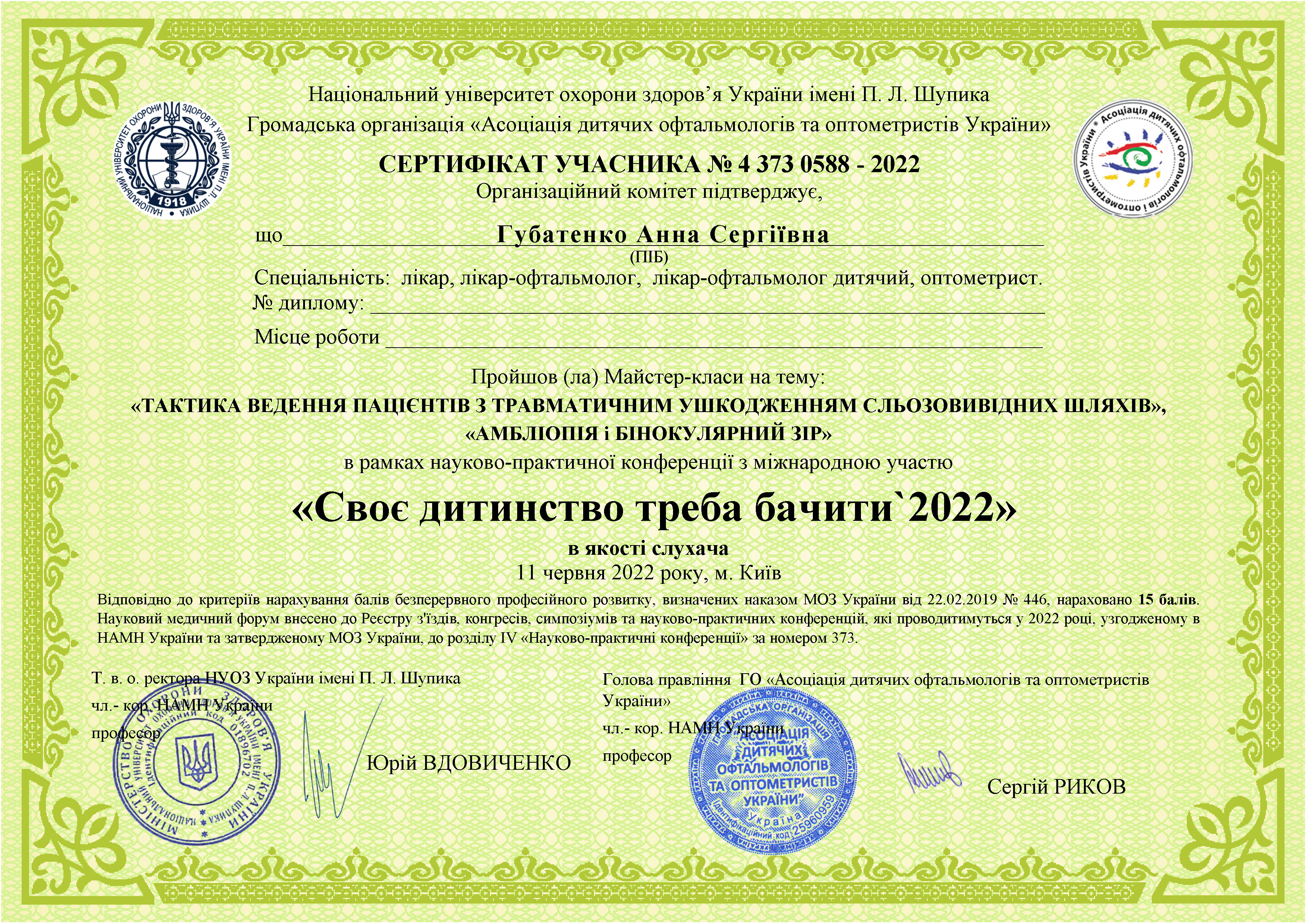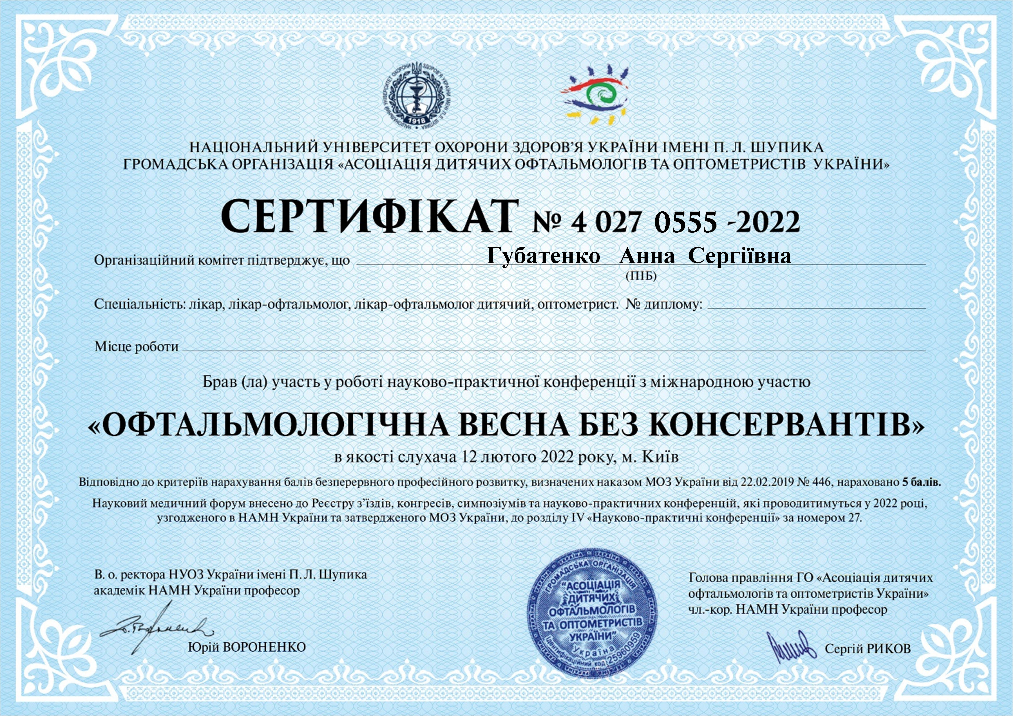 Блискуче орієнтується не тільки в очних захворюваннях, а й у суміжних спеціальностях.